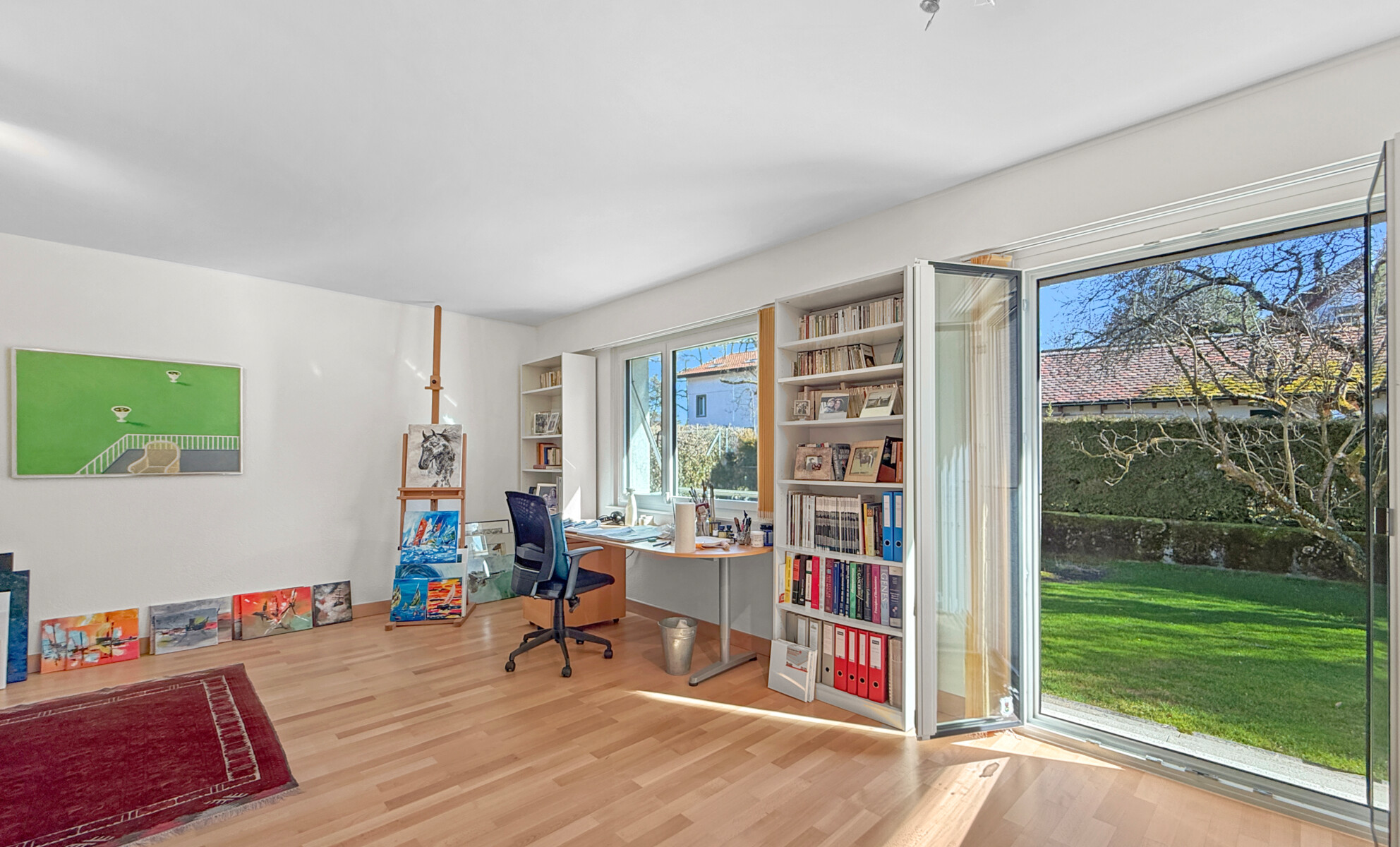 Implantée au cœur d’une petite rue sans issue, à proximité du centre d’Épalinges, elle bénéficie d’un vaste jardin paysagé, d’une intimité remarquable et d’un calme absolu offrant un cadre de vie privilégié.