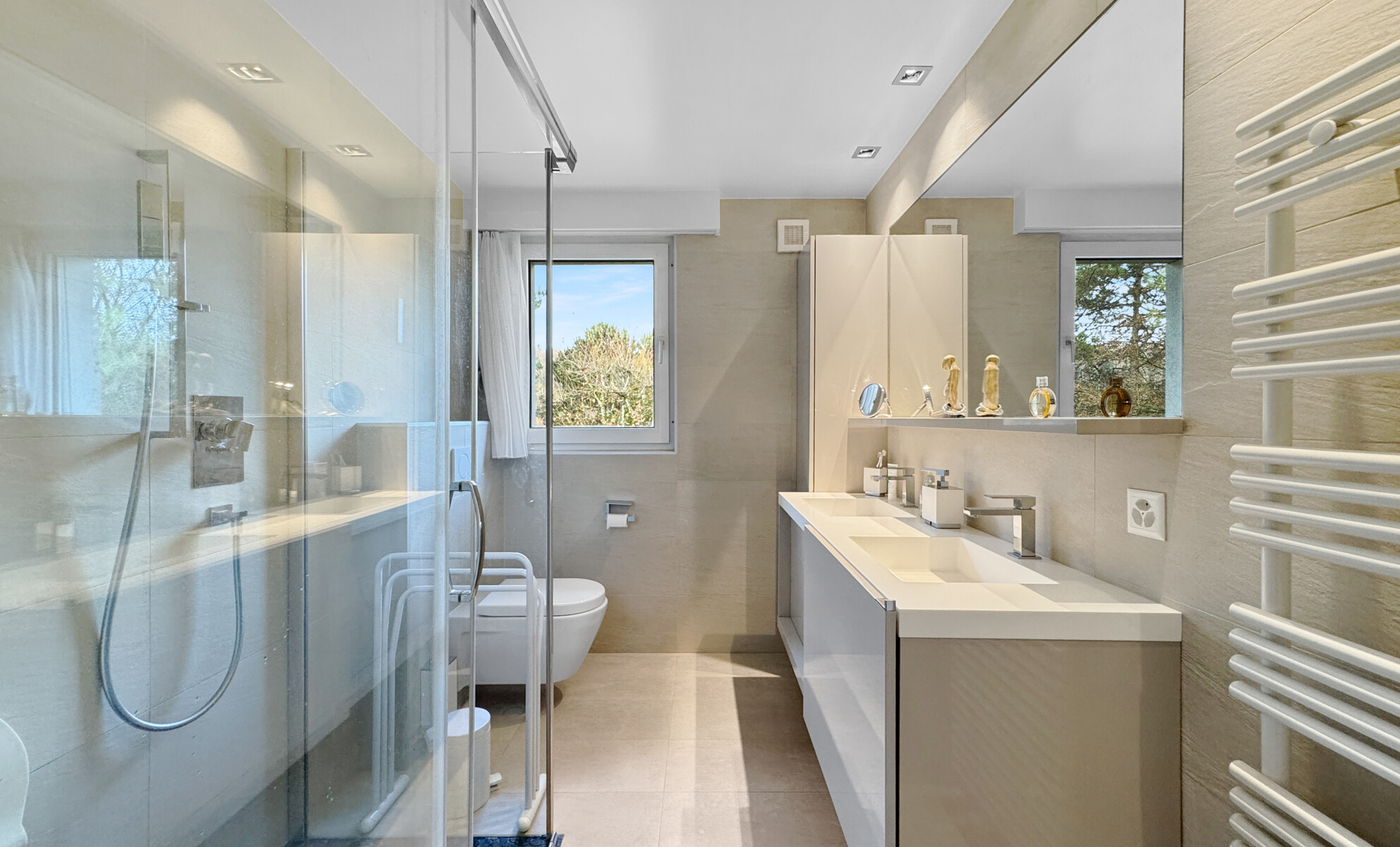 La zone nuit accueille 5 chambres de très belle taille (env. 21 m², 15.5 m², 24 m², 15.5 m² et env. 21 m²), dont une suite parentale d’env. 24 m² avec salle de douche privative, ainsi qu’une seconde salle de douche avec WC. Deux chambres sont actuellement partiellement ouvertes pour former un salon-bureau mais peuvent être re-séparées aisément ; l’une d’elles profite d’un balcon d’env. 14 m².
